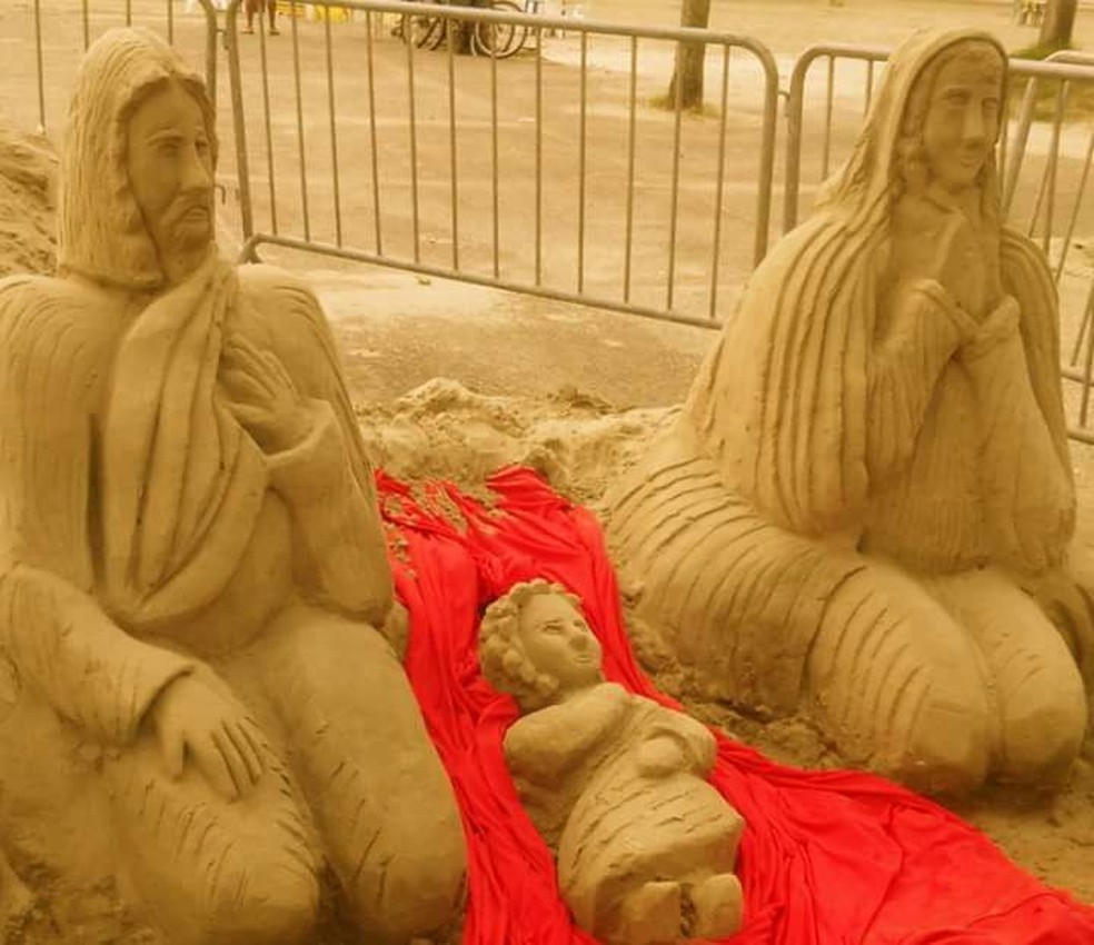 Presépio esculpida nas areias pelos irmãos Márcio e Allan (Foto: Márcio Santhos/Arquivo Pessoal)